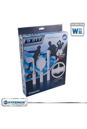 - Set includes: handle, racing wheel, baseball bat, golf club, tennis racket and replacement wrist strap